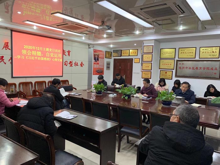 2020年12月15日下午,我校党支部开展12月份主题党日活动,活动主题为“领会精髓,自觉运用--学习《习近平谈治国理政》心得交流”。校长吴洪涛出席,全体在校党员参加。宣传委员、副校长吴永健主持。