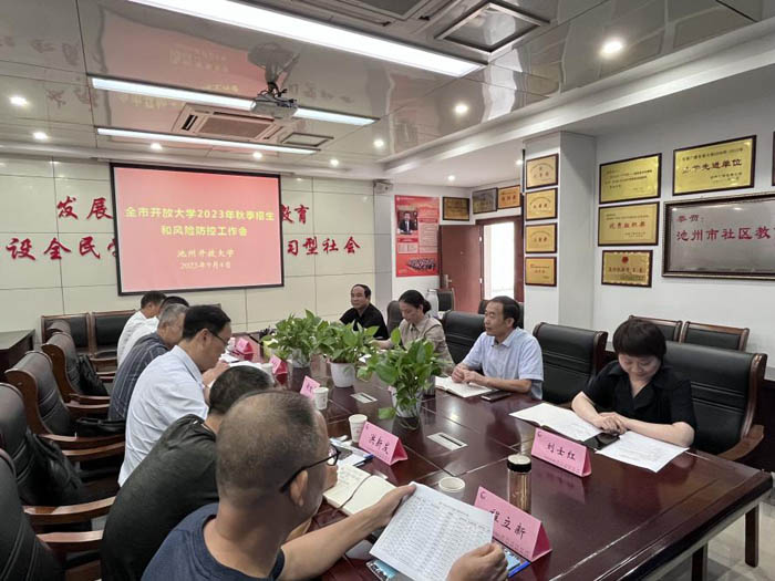 2023年9月4日上午,池州开放大学召开全市开放大学2023年秋季招生和风险防控工作会议,校党支部书记、校长吴洪涛,相关部门负责人,各县开放大学分管校长及招生教学负责人参加会议。会议由池州开放大学副校长吴永健主持。